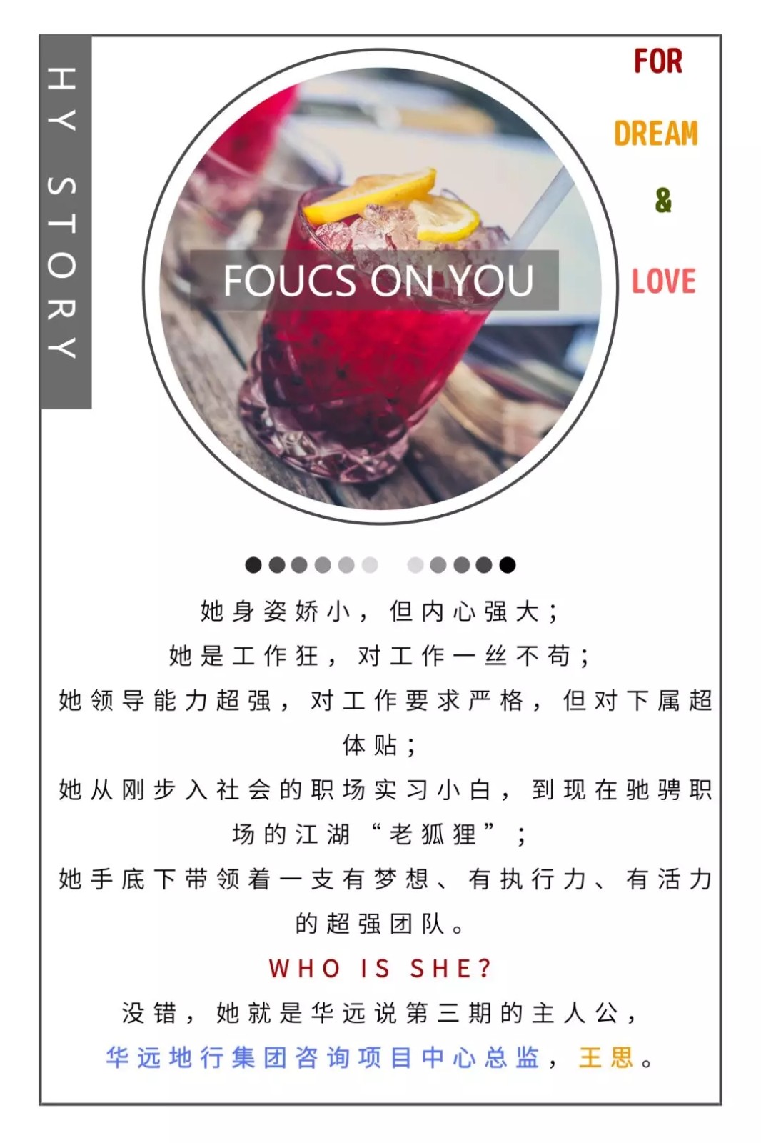 我十年的青春給了華遠,我很驕傲被稱為元老級人物,也很慶幸能見證華遠這十年的成長,雖然我現在還是很平凡,但很感謝華遠成就了現在的我。其實在華遠最大的收獲是讓我找到了事業的方向,人生最重要的不是站在什么位置,而是我們所朝的方向。